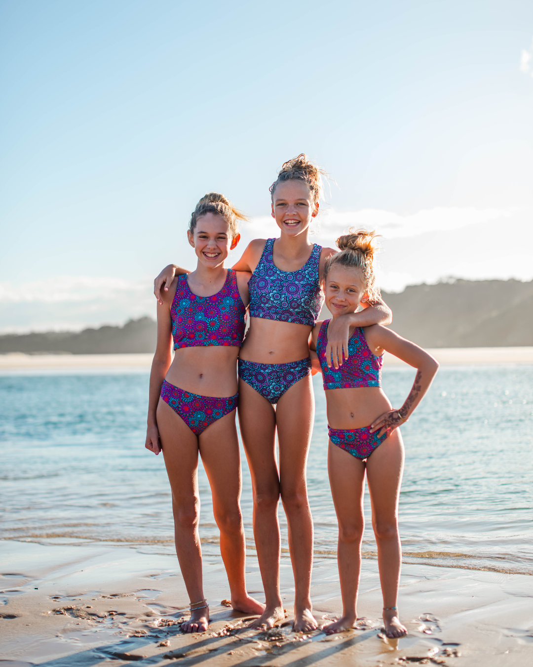The Charlotte Teen Bikini Bikini is the perfect blend of sporty style and age-appropriate design. Therefore making it an ideal choice for any girl looking for her first two piece. With a supportive crop top silhouette and full coverage bottoms, this set is designed for all-day comfort. Whether she’s splashing at the beach or diving into summer adventures.